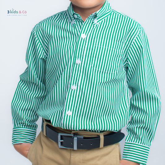 Boys' Button Down Long Sleeve Green Striped Shirt