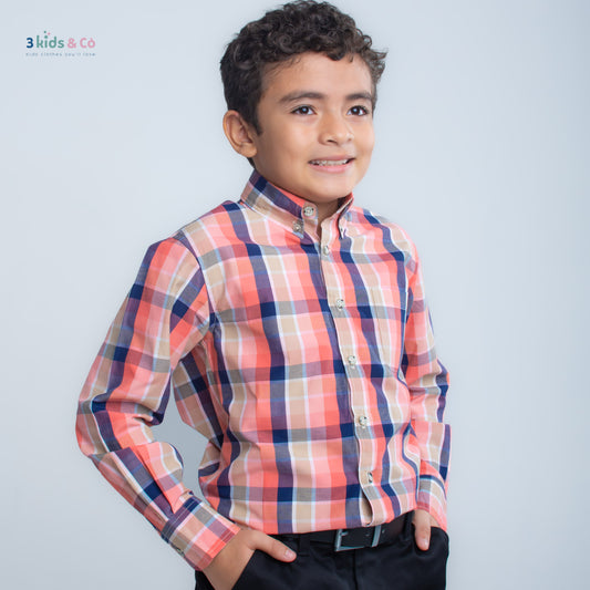 Boys' Long Sleeve Button Down Warm Tones Madras Plaid