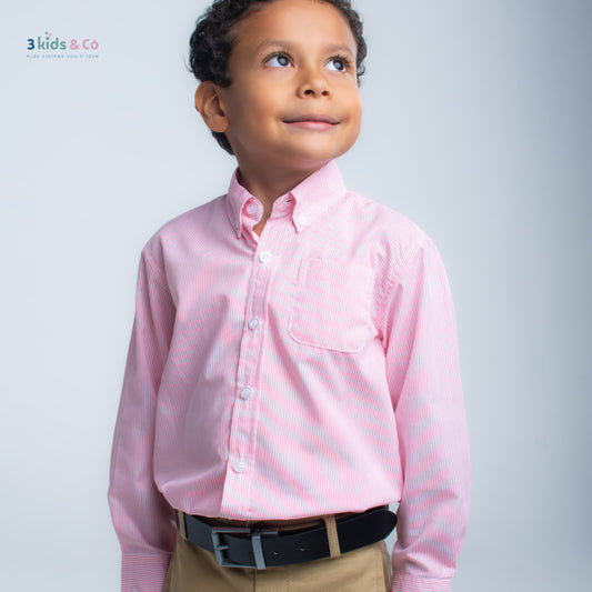 Boys' Long Sleeve Button Down Pink Pinstriped Shirt