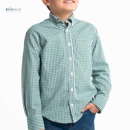 Boys' Long Sleeve Button Down All-Season Gingham Green Plaid