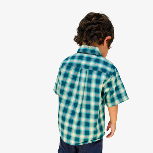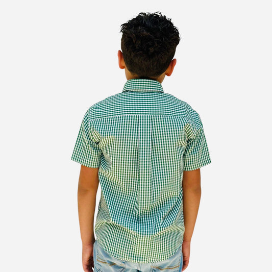 Boys' Short Sleeve Button Down Green All-Season Gingham Plaid