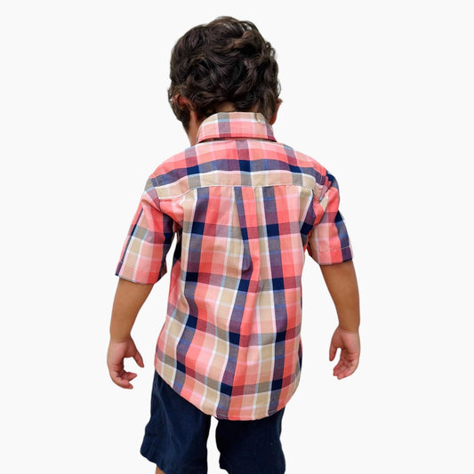 Boys' Short Sleeve Button Down Warm Tones Madras Plaid