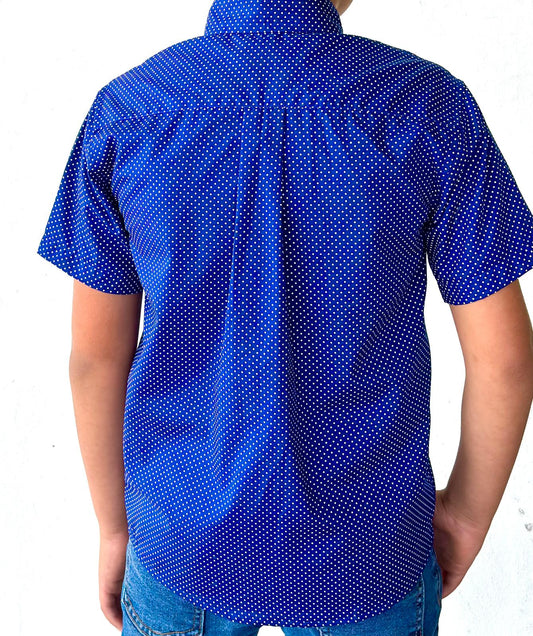 Boys Short Sleeve Button Down Blue Polka Dot Print
