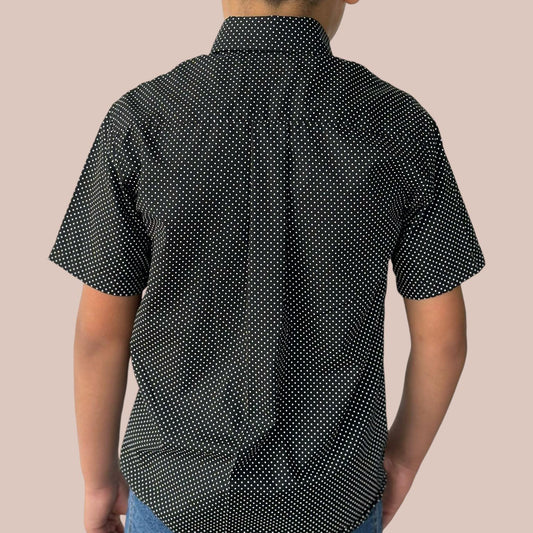 Boys' Short Sleeve Button Down Black Polka Dot Print Short Sleeve