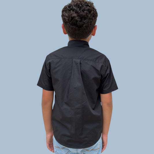 BOYS' SHORT SLEEVE BUTTON DOWN CLASSIC SOLID BLACK