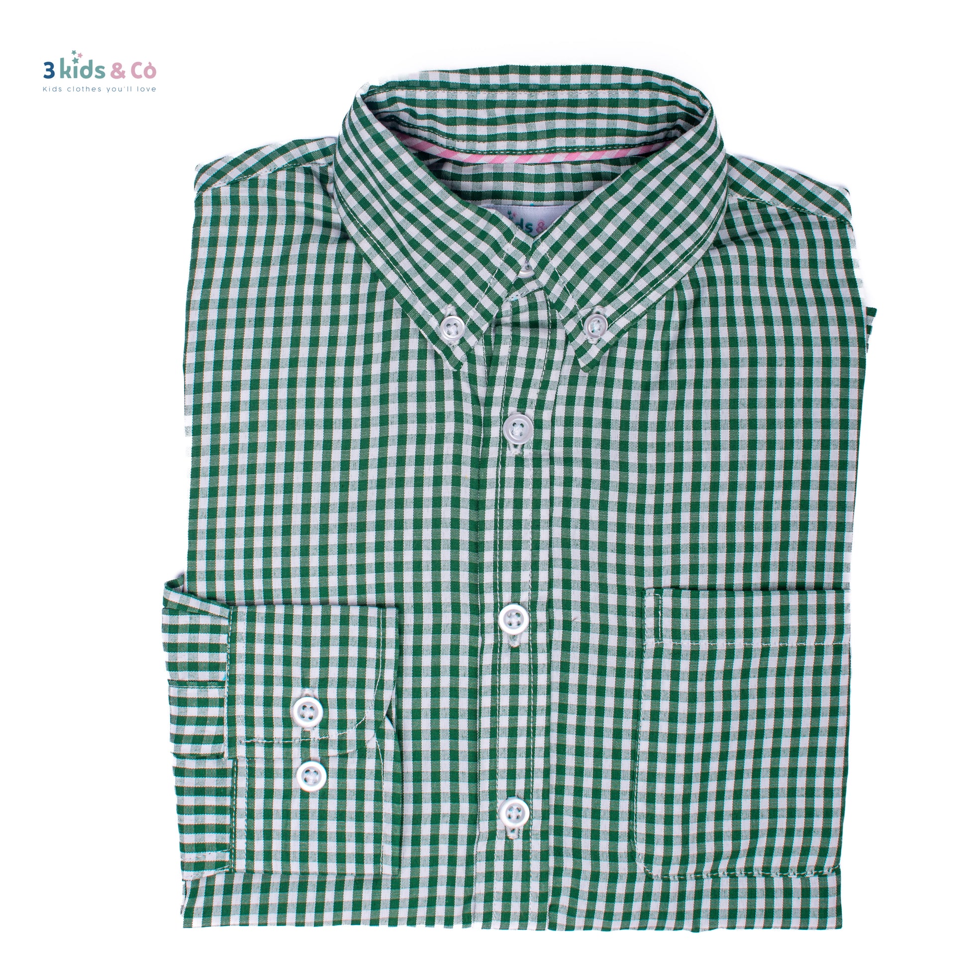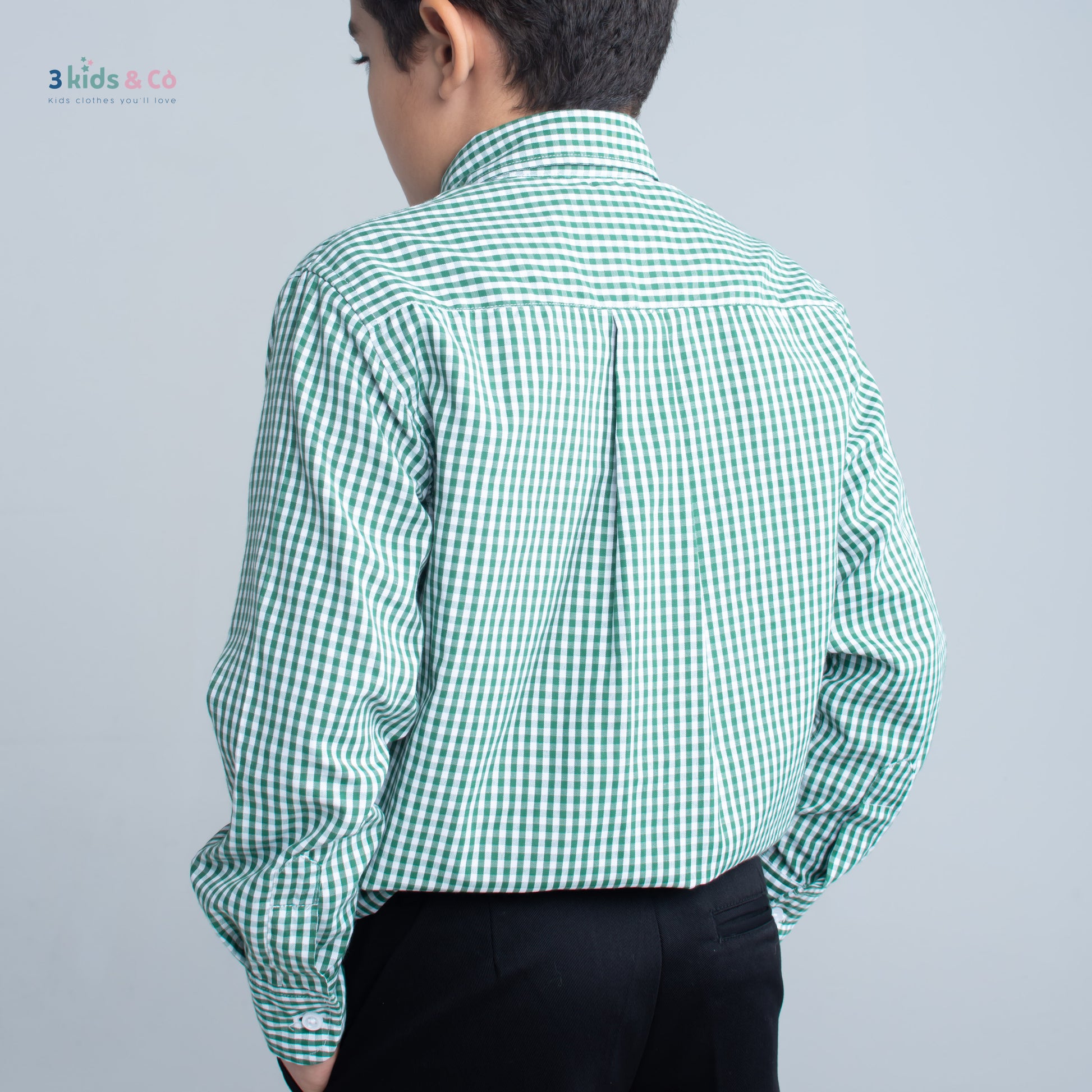 Boys' Long Sleeve Button Down All-Season Gingham Green Plaid